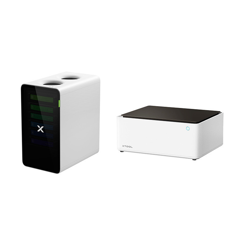 Az xTool M1 10W és xTool SafetyPro™ AP2 készlet ideális megoldás a precizitást, biztonságot és kényelmet értékelő alkotók számára. Az xTool M1 ötvözi a gravírozó, a lézer és a penge funkcióit, kivételes vágási és gravírozási pontosságot kínál a 10 W-os teljesítménynek és a sugárfókuszáló technológiának köszönhetően. A beépített AI kamera megkönnyíti a formatervezés pozicionálását, a különböző rendszerekkel kompatibilis intuitív szoftver pedig kényelmes kezelést biztosít. Az xTool SafetyPro™ AP2 füstszűrő tartály háromlépcsős szűréssel tartja tisztán a levegőt, eltávolítva a káros részecskéket és szagokat. A csendes működés, az egyszerű szűrőcsere és a készülék mobilitása teszi a készletet tökéletessé minden műhelyben.