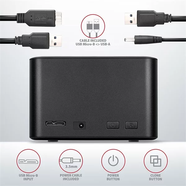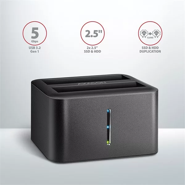 Axagon ADSA-D25 USB 3.2 Gen1 SATA fekete dual dokkoló állomás