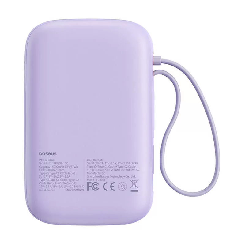 A Baseus QPow 2 a beépített USB-C kábeleknek és a további USB-portoknak köszönhetően akár négy eszköz egyidejű töltését is lehetővé teszi. Ez a funkció ideális azok számára, akiknek egyszerre több eszközt kell tölteniük, például okostelefont, táblagépet, vezeték nélküli fülhallgatót vagy okosórát. Mindez a fejlett gyorstöltési protokolloknak, például a PD3.0, QC3.0 és SCP protokolloknak köszönhetően lehetséges.