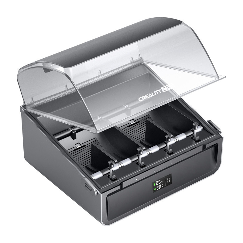 A CFS speciális nedvességelnyelőkkel támogatott légmentes kialakítása hatékonyan védi a filamentet a levegőből származó nedvesség felszívódásától. A beépített hőmérséklet- és páratartalom-kijelző lehetővé teszi a tárolási körülmények folyamatos ellenőrzését, és a rendszer figyelmezteti a felhasználót, ha az optimális páratartalomszintet túllépi. A rugós lécmechanizmus megakadályozza, hogy a filament nyomtatás közben kipattanjon a nyílásból, és a Creality Hyper Series kartontekercsekkel való kompatibilitás azt jelenti, hogy további adapterek nélkül is kihasználhatja a környezetbarát megoldások előnyeit.