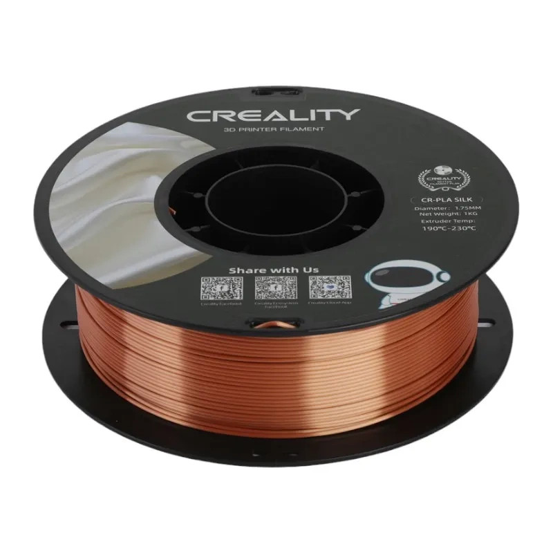A Creality CR-Silk filament fémes, elegáns csillogással rendelkezik, így szemet gyönyörködtető és tökéletes figurák, dekorációk vagy akár ékszerek nyomtatásához. Emellett lenyűgöző tartóssággal és a legtöbb Creality nyomtatóval való kompatibilitással is rendelkezik. Ráadásul tartós, mégis környezetbarát anyagokat használtak fel a gyártásához.