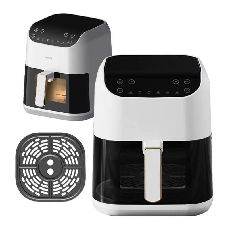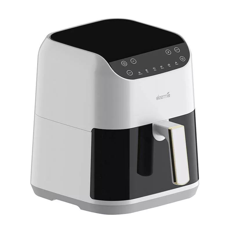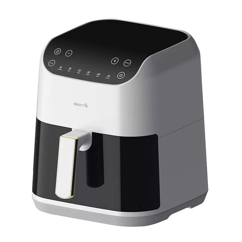 A Deerma DEM-KZ130W egy 1300 W-os légfritőz, amely keringtetett forró levegőt használ zárt térben, hogy finom ételeket készítsen Önnek. Az Ön biztonsága érdekében a készülék dinamikus NTC hőmérséklet-szabályozással és égési sérüléseket védő fogantyúval van felszerelve, így még élvezetesebb a használata. Ezenkívül a légfritőzön vannak gombok a hőmérséklet változtatására, a sütés késleltetési idejének beállítására, a menü kiválasztására, valamint a be- és kikapcsolásra.