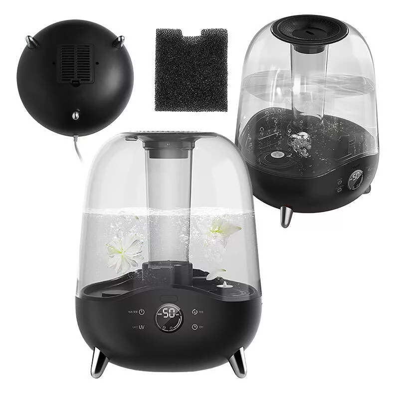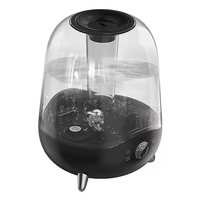A párásító úgy lett kialakítva, hogy ne alakulhasson ki szivárgás vagy esetleges mechanikai probléma. Az ovális alakú készülék az átlátszó tartályával és a fekete alsó részével bármilyen szobának stílusos kiegészítője lehet. A párásító kijelzőjén ellenőrizheti az aktuális páratartalmat, a víztartályt pedig különböző dekorációk hozzáadásával a saját ízlésére szabhatja.
