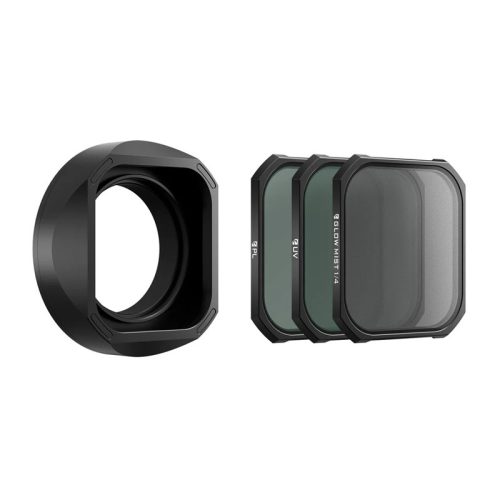 Az UV-szűrő védi a lencse elülső elemét és csökkenti az UV-sugárzás hatását, segítve a kép élességének megőrzését. A PL polarizáló szűrő csökkenti a tükröződést és javítja a színek telítettségét, ami különösen hasznos víz, ég vagy tájképek fényképezésekor. A Glow Mist 1/4 szűrő finoman lágyítja a fényt és hangsúlyozza a jelenet hangulatát, így fotói és videói filmszerűbbek lesznek.
