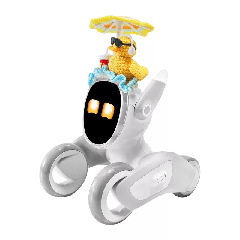 Ez a Loona Premium robothoz készült kötött jelmez egyszerű módja annak, hogy készülékednek könnyed, nyaralás ihlette megjelenést adj. Puha, kellemes tapintású anyagból készült, és úgy tervezték, hogy szorosan illeszkedjen a robot testéhez, anélkül, hogy akadályozná a mozgását vagy az érzékelők működését. A könnyű, kézzel kötött kialakításnak köszönhetően a jelmez könnyen fel- és levehető, így gyorsan megváltoztathatja a robot megjelenését. A kacsa, az esernyő és a nyári motívumok díszítő elemei még egyedibbé teszik a Loona megjelenését, és vonzzák a figyelmet a mindennapi játék és a családtagokkal való interakciók során.