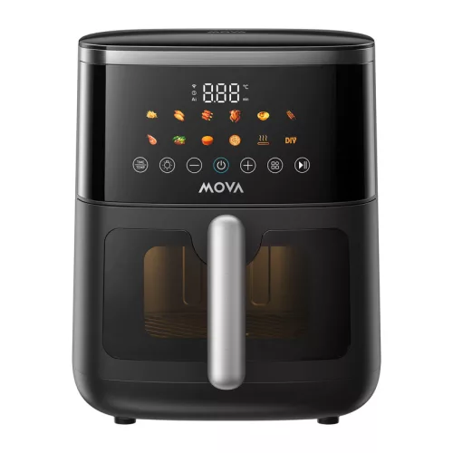 A MOVA FD10 Pro Max segítségével finom ételeket készíthet felesleges zsír nélkül. Ez a légsütő 2000 W teljesítménnyel, kettős fűtőrendszerrel és 6 literes kosárral rendelkezik. 12 előre beállított programot és alkalmazáson keresztüli távvezérlést kínál. A pontos hőeloszlásnak köszönhetően gyorsabban, egészségesebben és kényelmesebben főz, mint a hagyományos konyhai készülékek. Ez a készülék lehetővé teszi, hogy egyenletesen átsütött ételeket készítsen – a sült krumplitól a csirkén át a muffinokig – anélkül, hogy zsírt kellene hozzáadnia.