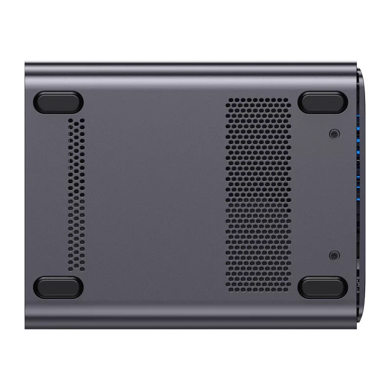A NAS N5 Pro mini PC új teljesítményszintet állít fel a NAS-osztályú miniszámítógépek között. A Zen 5 + Zen 5c architektúrájú, 12 magot és 24 szálat tartalmazó, akár 5,1 GHz-es órajelű AMD Ryzen™ AI 9 HX Pro 370 lapkával hajtva akár 10-szer nagyobb sebességet biztosít, mint a tipikus Intel N100 processzoros modellek. Ez a teljesítmény villámgyors többfelhasználós fájlelérést, párhuzamos feldolgozást és a 4K videótartalmak zökkenőmentes dekódolását teszi lehetővé. Az integrált NPU 50 TOPS helyi AI-teljesítményt kínál, ami az előző generációhoz képest akár 68%-kal növeli az AI-alapú feladatok teljesítményét. Az integrált AMD Radeon™ 890M GPU viszont javítja a videók átkódolását és renderelését, 20%-kal nagyobb simaságot biztosítva - a készülék ideális multimédia-intenzív környezetekhez.