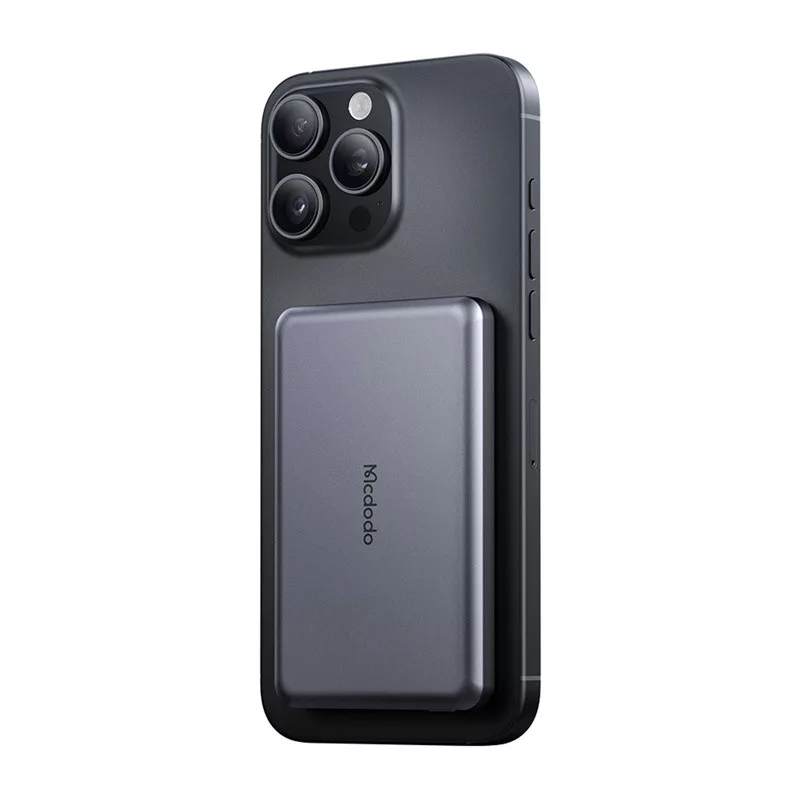 A Mcdodo MC-4641-et úgy tervezték, hogy tökéletesen csatlakoztatható legyen az iPhone 16 készülékhez - nem akadályozza a kamerát, és nem áll túl a készülék szélein. A speciális kialakításnak köszönhetően a rögzítés biztonságos és stabil, ami növeli a mindennapi használat kényelmét. A powerbank támogatja az iPhone Battery Widget funkciót is, amely lehetővé teszi, hogy az iPhone képernyőjéről könnyedén nyomon követhesse a telefon és maga a készülék töltöttségi szintjét is. Az intuitív energiagazdálkodást egy beépített gomb segíti - egy kattintással aktiválható a vezeték nélküli töltés, dupla kattintással pedig kikapcsolható. Három színű LED jelzi a töltés állapotát: fehér (töltési szint), kék (vezeték nélküli töltés) és zöld (gyors bemeneti töltés).