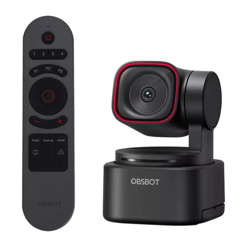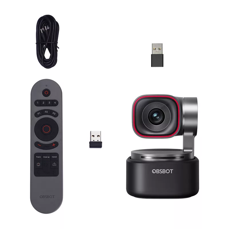 A készlet tartalmazza az OBSBOT Tiny Smart Remote 2-t, amely ötvözi a kamera távirányító és a prezentáló funkcióit. Egyetlen eszközzel manuálisan vezérelheti a gimbal mozgását, a zoomot és az előre beállított képkockapozíciókat, valamint azonnal aktiválhatja a legfontosabb AI funkciókat, mint például a személykövetés, a zoom mód, az asztali mód és a kézkövetés. A távirányító kényelmesen vezérelhetővé teszi a prezentációkat is, mivel gombokkal lehet váltani a diákok között, teljes képernyős módba váltani és lézerpointert használni, így praktikus eszköz képzésekhez, előadásokhoz és élő prezentációkhoz. A fizikai gombok és az ergonómikus elrendezés intuitívvá teszik a kamera és a prezentáció vezérlését még dinamikus prezentációk során is, anélkül, hogy egérre, billentyűzetre vagy alkalmazásra lenne szükség.