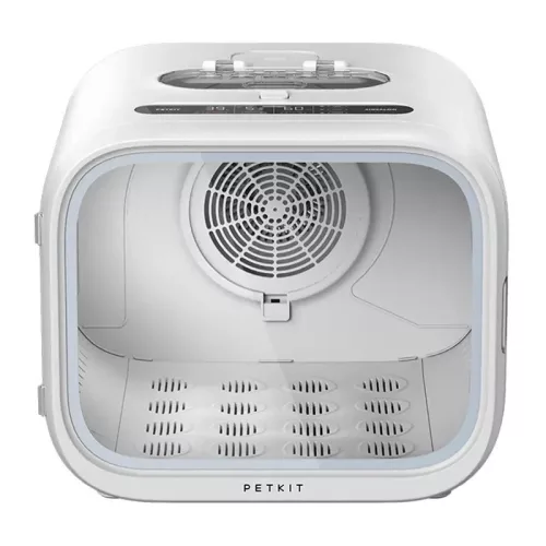 A PetKit szárítót gondosan átgondolt kialakítása különbözteti meg. A termék egy kiegészítő ablakkal van ellátva, és a készülék belsejében egy lámpa található, amely lágy fényt bocsát ki. Így bármikor ellenőrizheti, hogy kedvence hogy van. Továbbá a LED-panel kényelmes működést biztosít, a moduláris kialakításnak köszönhetően pedig a készülék könnyen tisztítható.