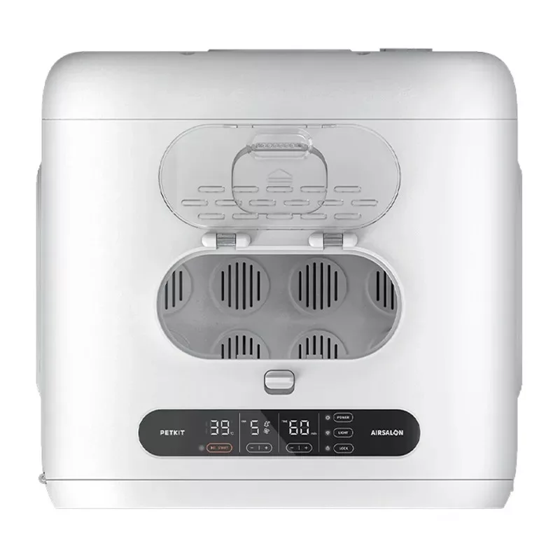 Az Airsalon Max a PetKit intelligens kisállat szárítója, amely 360°-os fúvórendszerrel van felszerelve. Ezenkívül a negatív ionok használata védi a szőrzetet, és simává, fényessé teszi azt. Számos biztonsági funkció felel a biztonságos használatért, a kezelést pedig egy alkalmazás és egy kezelőpanel könnyíti meg. Ezen kívül a szárító 60 literes kapacitással rendelkezik, így 2 macska vagy kistestű kutya is elfér benne.
