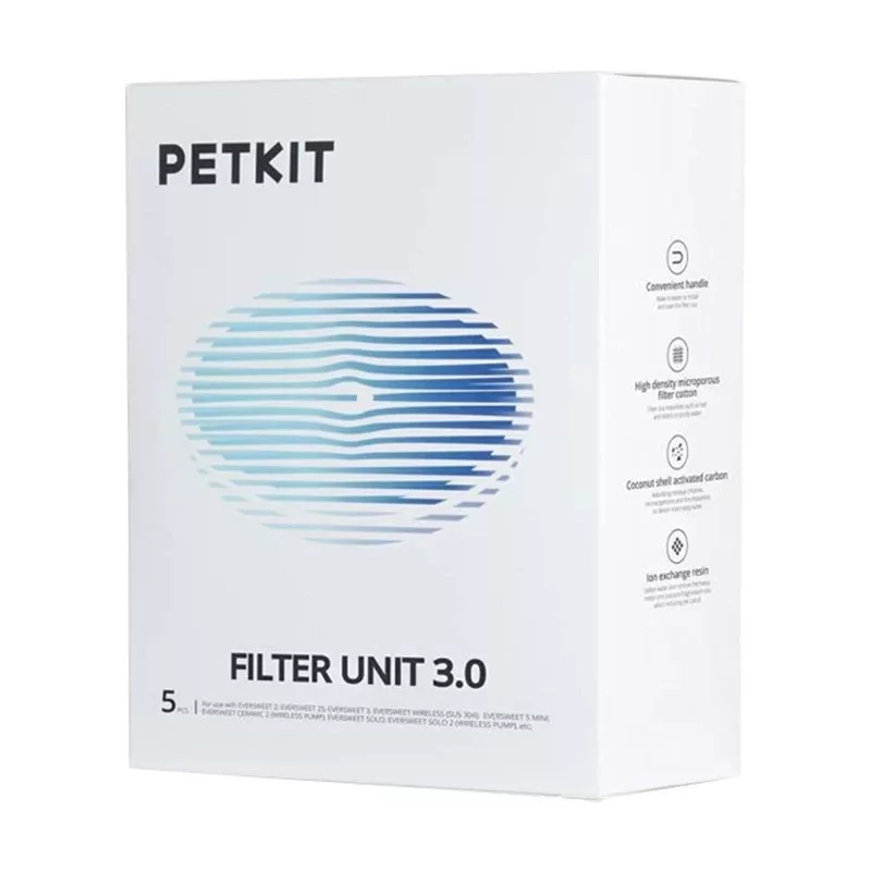 A szűrők az Eversweet 1 / 2 / 3 itatókhoz készültek. 3-fokozatú speciális szűrés biztosítja, hogy macskái hosszabb ideig tiszta és friss vízhez jussanak. Az első szakaszban egy speciális hálós szűrő hatékonyan tisztítja meg a vizet a szőrtől és egyéb szennyeződésektől, majd az aktív szénszűrő megszabadítja a vizet a kellemetlen szagtól és ízzel gazdagítja a vizet. Az utolsó szakaszban az ioncserélő gyanta csökkenti a vízben lévő nehézfémek szintjét. A szűrők cseréje nem okoz majd gondot Önnek. A víz tisztaságának biztosítása és a készülék hatékonyságának fenntartása érdekében ügyeljen arra, hogy az itatóban lévő szűrőket gyakran cserélje.