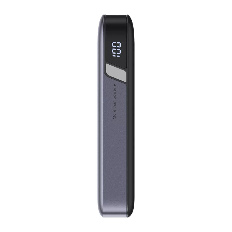 A digitális LED-kijelzőn gyorsan ellenőrizheti a powerbank töltöttségi szintjét. Emellett az alacsony áramerősségű üzemmód lehetővé teszi, hogy biztonságosan töltsön kisebb elektronikai eszközöket, például TWS fejhallgatókat, okosórákat, elektromos fogkeféket vagy kis ventilátorokat. Az üzemmód a gomb 3 másodpercig történő lenyomva tartásával aktiválható.