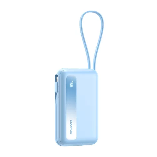 A beépített hosszúságú kábel diszkréten el van rejtve a tokban, így mindig nálad van, és nem kell aggódnod az extra kábelek miatt. A praktikus LED-kijelző segítségével egyetlen érintéssel ellenőrizheted a töltés állapotát, a sima kék kivitelű, kompakt kialakításnak és a kényelmes kábelkezelésnek köszönhetően pedig a powerbank legalább annyira stílusos, mint amennyire modern. Ráadásul - a Romoss PPR10 légi és vasúti szállításra jóváhagyott - tökéletes útitárs.