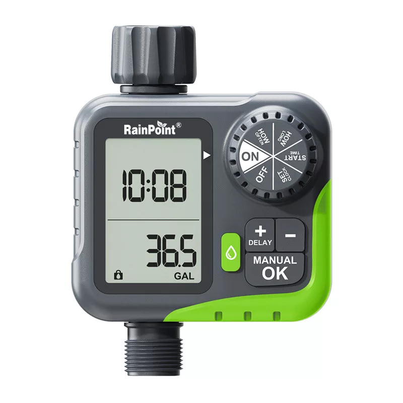 Gondoskodjon kertjéről tudatosabban a RainPoint ITV117 vezérlővel, amely az automatikus öntözést vízfogyasztás-szabályozó funkcióval ötvözi. A készülékkel beállíthatja az öntözés gyakoriságát 12 óránként vagy 1–7 napos ciklusban, valamint megadhatja a működési időt is, amely legfeljebb 3 óra 59 perc lehet. Ezen felül a beépített áramlásmérő méri a vízfogyasztást (akár 9999 literig), ami jobb szabályozást és megtakarítást tesz lehetővé. A könnyen leolvasható 2,5 hüvelykes LCD-képernyő és a tárcsával és gombjaival történő intuitív vezérlés egyszerűsíti a napi működtetést.
