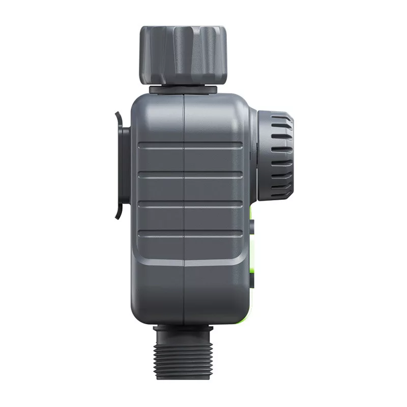 A vezérlő kompatibilis a népszerű 3/4" és 1" csatlakozásokkal, és támogatja a szabványos 3/4" kerti tömlőket. Az akkumulátoros tápellátás (2 × AA, nem tartozék) lehetővé teszi az önálló működést áramellátás nélkül. A készülék 0,5–8 bar közötti nyomáson működik, és hálós szűrővel van felszerelve, amely megvédi a mechanizmust a szennyeződésektől.