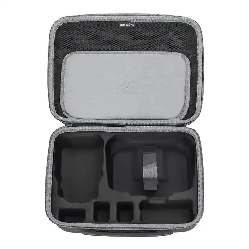 A Sunnylife N4P-B698 egy kiváló minőségű táska, melyben minden szükséges tartozék elfér. Belsejében dombornyomott rekeszek találhatók a drón, a vezérlő (amelyet ráadásul egy hevederrel rögzítenek), a töltő és az 5 akkumulátor számára - ennek köszönhetően a tartozékok stabilan, külön rekeszekben fekszenek, ami megakadályozza, hogy egymásnak ütközzenek vagy a táskában szaladgáljanak, valamint nagyobb biztonságot nyújt ütések esetén. A rekeszekben nyugodtan elfér a drón és a vezérlő a fedelekkel együtt.