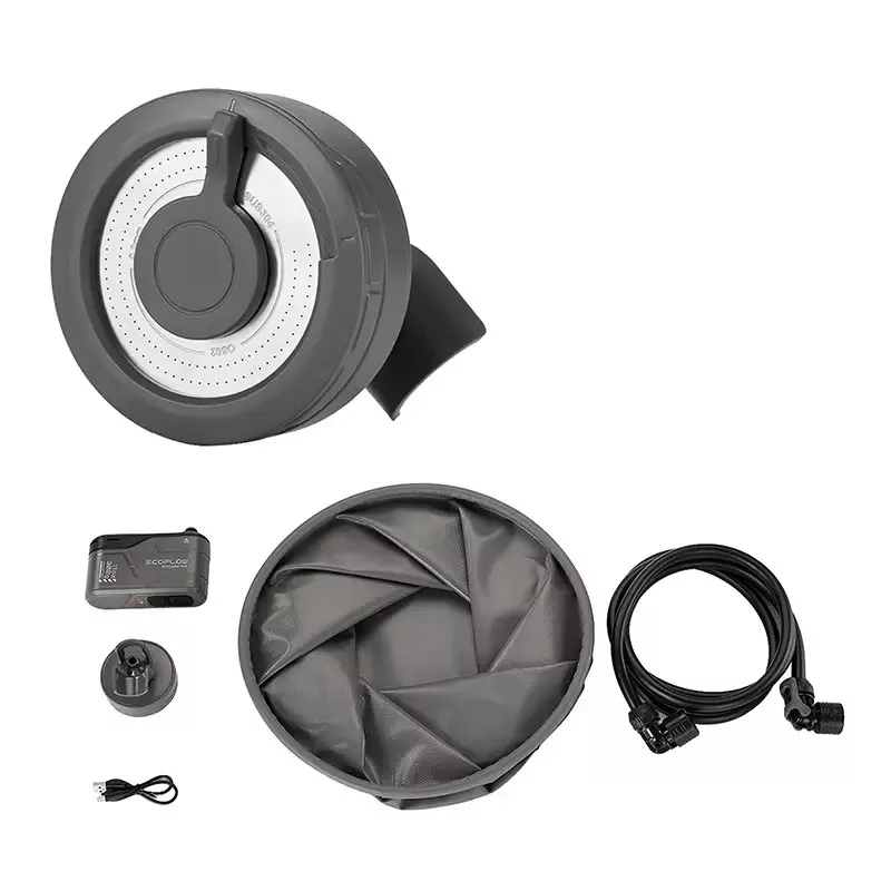 Az EcoFlow Shower Kit egy sokoldalú zuhanykészlet, amely kempingezéshez, utazáshoz és olyan emberek számára készült, akik gyakran vannak távol otthonuktól. A készlet tartalmaz egy könnyű, összecsukható vödröt, zuhanyszivattyút, tömlőt végekkel, zuhanyfejet és tápkábelt. A kompakt kialakításnak és a könnyű súlynak köszönhetően a készlet könnyen szállítható, és ideális bármilyen terepi körülmények között. Ráadásul a zuhany kompatibilis az EcoFlow WAVE sorozat hordozható légkondicionálóival - így a kondenzált vizet például kézmosásra, edénymosásra vagy autómosásra használhatja kültéri körülmények között.