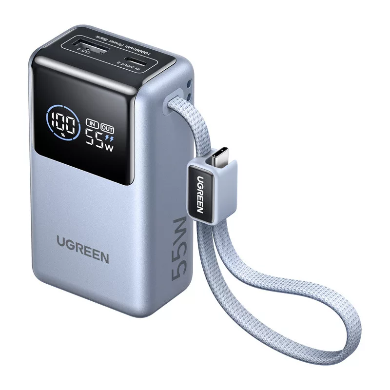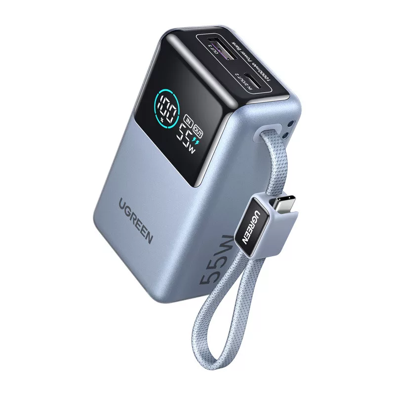 A modern okostelefonok, táblagépek és laptopok egyre több energiát igényelnek, ezért érdemes magával vinni egy power bankot, amellyel bármilyen helyzetben gyorsan feltöltheti készülékeit. Az UGREEN PB727 egy kompakt, 10 000 mAh kapacitású power bank, amely akár 55 W-os gyorstöltést is támogat. Ezáltal nemcsak okostelefonokhoz, hanem könnyű laptopokhoz és táblagépekhez is alkalmas. A beépített USB-C kábel, a további portok és a könnyen leolvasható LED-kijelzőnek köszönhetően a készülék utazás közben és a mindennapi életben is kényelmesen használható.