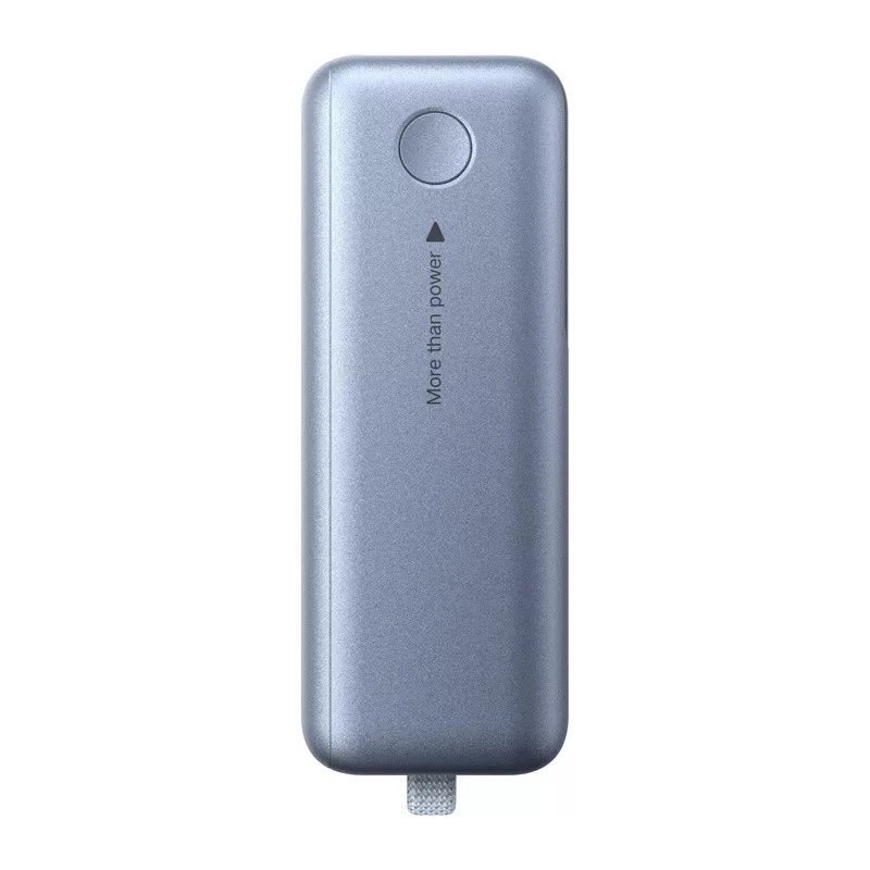 A power bank beépített USB-C kábellel rendelkezik, amely támogatja mind az eszközök, mind a power bank töltését. Ez lehetővé teszi, hogy egy kábel két funkciót is ellássa – bemenetet és kimenetet. A fonott nylon szerkezet növeli a tartósságát, és egy speciális fogantyú megkönnyíti a készülék hordozását.